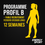 Programme 12 semaines pour **Profil B – faible recrutement fessiers (fessier long)**.