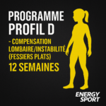 Programme 12 semaines pour **Profil D – compensation lombaire / instabilité (fessiers plats)**.
